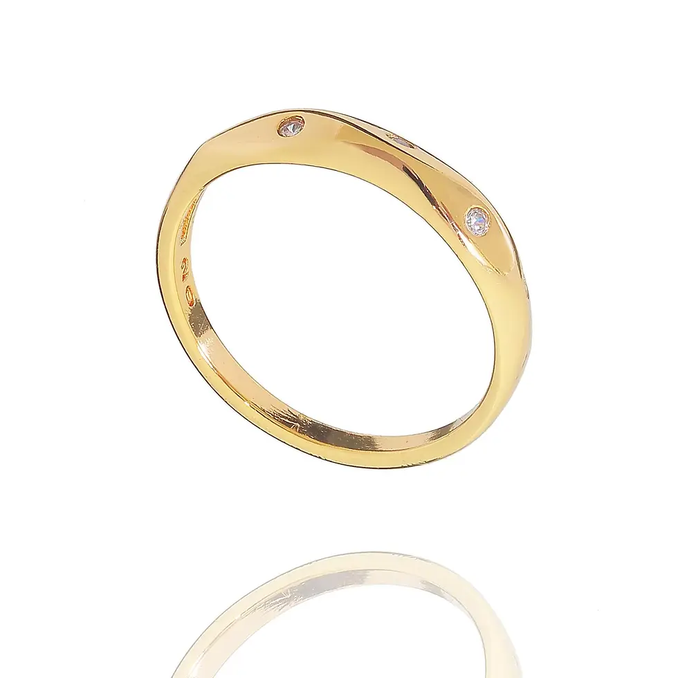 Anel ondulado com zircônias em banho de ouro premium
